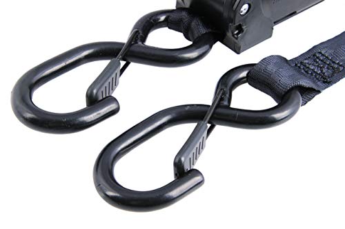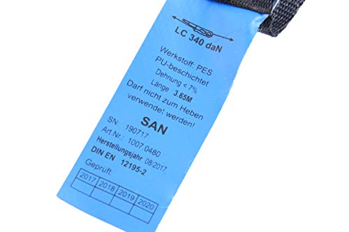 Sandax Automatik Spanngurte mit Sicherungs-Haken im 2er Set, Selbstaufwickelnde Transportgurte 3,65m mit Ratsche, bis 340kg, DIN EN 12195-2, 25mm Breit, Einteilige Zurrgurte | S-Haken mit Sicherung
