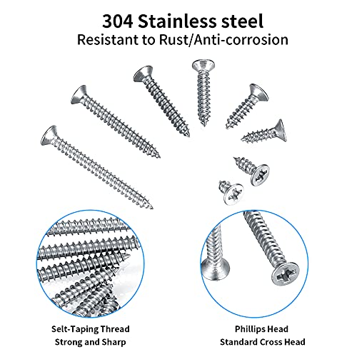 【Premium-Material】 Unsere selbstschneidenden Kreuzschlitzschrauben bestehen aus hervorragendem Edelstahl 304 mit hoher Härte, die Korrosionsbeständigkeit, Rostbeständigkeit, nicht leicht zu beschädigen, robust und langlebig ist.