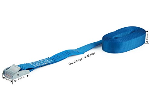 VORTEILSPACK: 6 einteilige Klemmschlosszurrgurte im Set. Gurtlänge 4m / Gurtbreite 25mm Farbe: blau