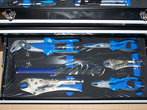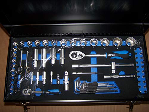 Werkzeugkoffer Original AIRPRESS Mit Hilfe von 3 gesicherten und kugelgelagerten Werkzeugschubladen und 1 großem Fach bedröppelt dem oberen Deckel. Der Koffer kann Mit Hilfe von separaten Schlössern dicht werden. Mit Hilfe von seitlichen Handgriffen Incl. 98 Teile hochwertiges Werkzeug. Das Werkzeug ist sortiert in passender 2-farbiger Weichgummi Polsterung untergebracht. Da klappert nichts! Oberes Fach ( Mit Hilfe von Deckel ) ◦Inbuschlüsselsatz im eigenen Halter Mit Hilfe von rundem Ergebnis am langen Knauf: ◾H1,5 ◾H2 ◾H2,5 ◾H3 ◾H4 ◾H5 ◾H6 ◾H8 ◾H10 ◦Umschaltknarre 1/2″ Mit Hilfe von 72 Zähnen, Länge 255mm ◦Nüsse, normale Länge (12 Bruchstück) ◾SW13 ◾SW15 ◾SW17 ◾SW18 ◾SW19 ◾SW20 ◾SW21 ◾SW22 ◾SW24 ◾SW27 ◾SW30 ◾SW32 ◾Lange Nüsse (80mm)◾SW17 ◾SW19 ◾Zündkerzenschlüssel◾SW16 ◾SW21 ◾Kreuzgelenk ◾Verlängerung 125mm ◾Verlängerung/Knebel 250mm ◦Umschaltknarre 1/4″ Mit Hilfe von 72 Zähnen, Länge 155mm ◦Nüsse, normale Länge (11 Bruchstück): ◾SW4 ◾SW5 ◾SW6 ◾SW7 ◾SW8 ◾SW9 ◾SW10 ◾SW11 ◾SW12 ◾SW13 ◾SW14 ◦Lange Nüsse (50mm) ◾SW8 ◾SW10 ◾SW13 ◦Torx◾T8 ◾T10 ◾T15 ◾T20 ◾T25 ◾T27 ◾T30 ◾T40 ◦PH (Philips Kreuzschlitz) ◾PH1 ◾PH2 ◾PH3 ◦PZ (Pozidrive Kreuzschlitz) ◾PZ1 ◾PZ2 ◾PZ3 ◦Innensechskant (Hex, Inbus) ◾H3 ◾H4 ◾H5 ◾H6 ◦Schlitzschraube ◾SL4 ◾SL5,5 ◦Verlängerung 50mm ◦Verlängerung 100mm ◦Knebel 110mm ◦Kreuzgelenk ◦Haltegriff 165mm In der oberen Schublade sind 10 verschiedene Schraubendreher: ◦Kreuzschlitz ◾1 x kurz (Knubbel) 6×38 ◾3×75 ◾5×100 ◾6×100 ◾6×150 ◦Schlitz ◾1 x kurz (Knubbel) 6×38 ◾3×75 ◾4×100 ◾5×100 ◾6×150 In der mittleren Schublade sind 12 Maul-Ringschlüssel (Ringschlüssel Mit Hilfe von Ratschenfunktion) ◦SW8 ◦SW9 ◦SW10 ◦SW11 ◦SW12 ◦SW13 ◦SW14 ◦SW15 ◦SW16 ◦SW17 ◦SW18 ◦SW19 In der unteren Schublade sind sonstige 6 Werkzeuge: ◦1 x Grip-Zange 200mm ◦1 x Grip-Zange 130mm ◦1 x Kombi-Zange ◦1 x Spitz-Zange ◦1 x Wasserpumpenzange ◦1 x Hammer. Gesamtgewicht ca 19KG Ideal sondern den Heimwerker, Mechaniker und Hausmeister