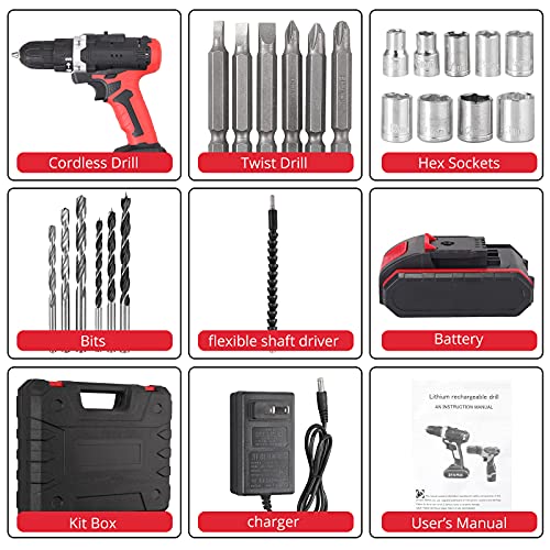 Akku-Bohrschrauber 21V Schnurlos Li-Ion Akku Schlagbohrschrauber Set 18+1 Drehmomentstufen 2-Gang Stufenlos…