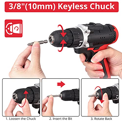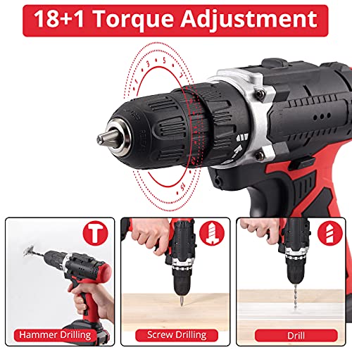 【18+1 Drehmomenteinstellung】18 + 1 Drehmomenteinstellung mit größerem Spannfutter, Das große 10 mm (3/8 „) schlüssellose Spannfutter bietet Ihnen eine hervorragende Bitretention.