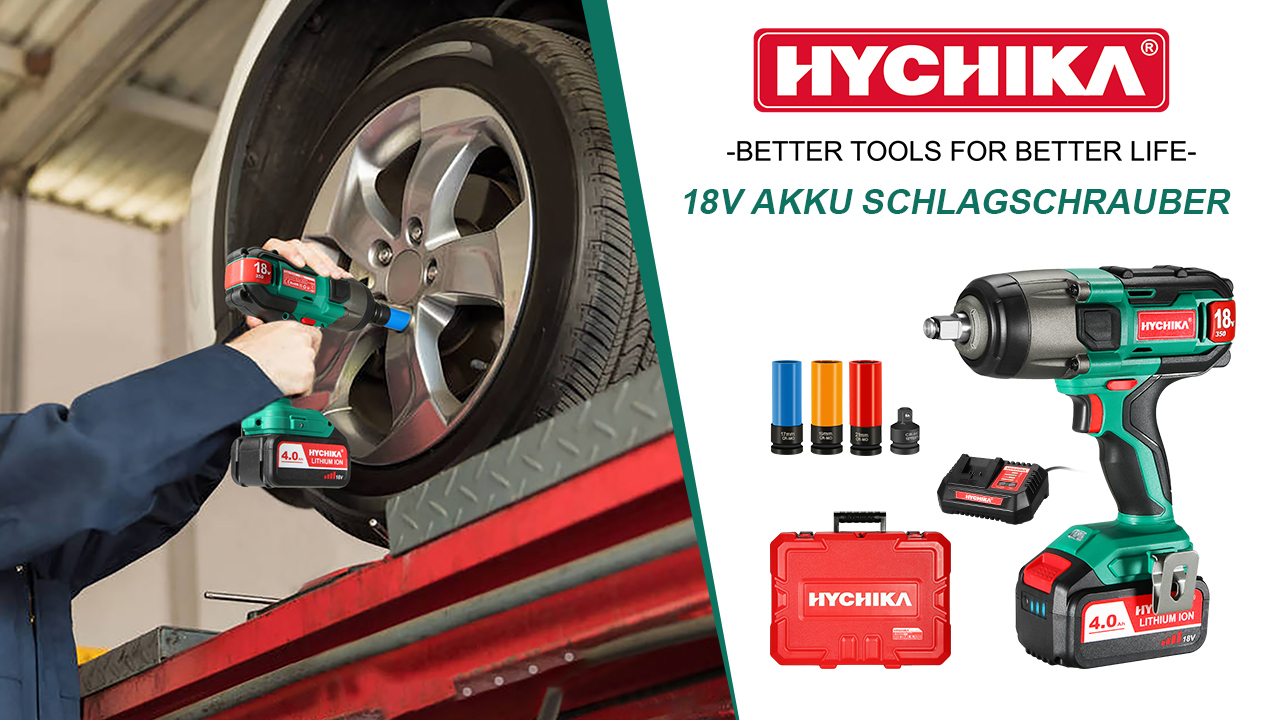 Akku Schlagschrauber 18V, HYCHIKA Professional Akku Drehschlagschrauber mit 4.0Ah, 1 Stunde Schnellladegerät, 3PCS…