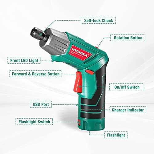 HYCHIKA BETTER TOOLS FOR BETTER LIFE Akkuschrauber, 6N·m Drehmoment 2000mAh 3,6V Akku mit 36 Zubehörteilen, LED-Licht…