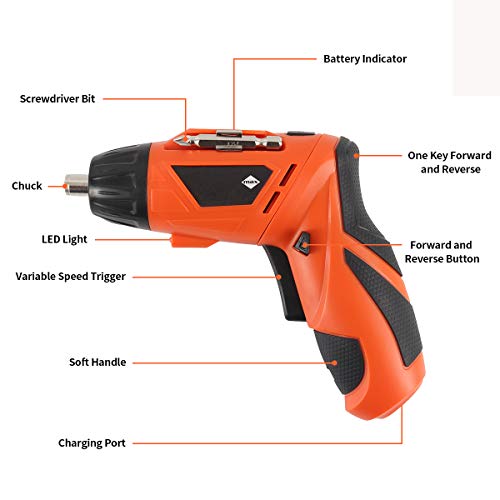 【Wiederaufladbarer Schraubenantrieb】Wiederaufladbare 4,2 V 1300 mAh Lithiumbatterie wird in 3 bis 5 Stunden aufgeladen, was eine große Kapazität und eine längere Lebensdauer bietet. Mit Stromanzeige, um Sie daran zu erinnern, es aufzuladen. Das USB-Mikro-Ladekabel eignet sich für verschiedene USB-Anschlüsse qua Computerausgänge, Power Bank usw.