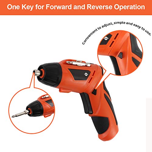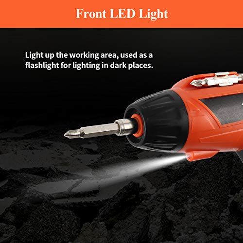【Hohe Leistung】Das vordere LED-Licht beleuchtet den Arbeitsbereich hell und kann wie Taschenlampe für die Beleuchtung an dunklen Orten verwendet werden. Ein Schlüssel für den Vorwärts- und Rückwärtsbetrieb. Die verschiedenen Schraubendreher-Zubehörteile werden schnell ausgetauscht und von einem kleinen Magneten, der in den 1/4 ”Sechskantfutterkopf eingebaut ist, zäh gehalten.