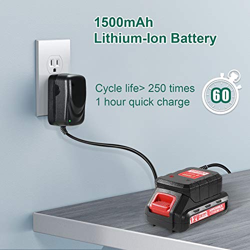 🌟【21 + 1 DREHMOMENTEINSTELLUNGEN UND LADEGERÄT FÜR SCHNELLE LADUNG】Der Akkumulator Bohrschrauber hat 21 Drehmomentstufen und eine Bohrstufe. Es kann zum Bohren von Holz, Metall, Kunststoff und als ein Schraubendreher verwendet werden. Maximales Drehmoment beträgt 30N.m zum Schrauben. Ausgestattet mit einer 12V 1500mAh wiederaufladbaren Lithium Batterie und einem Schnllladegerät. Die vollständige Akkumulator-Ladezeit beträgt 1 Stunde.