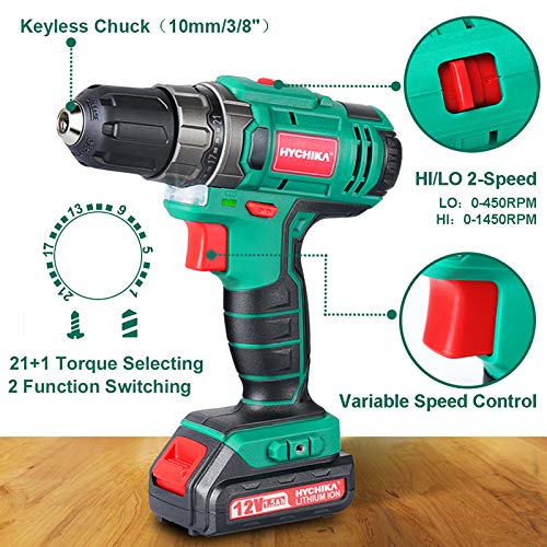 Akkuschrauber, HYCHIKA 12V Akku Bohrschrauber 30N·m Max. Drehmoment mit 1.5 Ah Akku, 1H Schnellladung, Kommt mit 21…