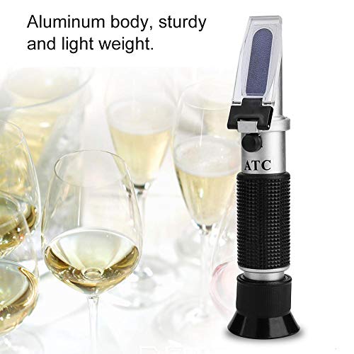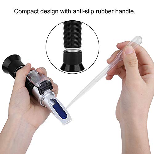 【Precision Measurement】 Das Refraktometer kann Brix zwischen 0-32% ± 0,2% und spezifisches Gewicht zwischen 1.000-1.120, Brix Akribie: +/- 0.2% Abgreifen. Sofortige und zuverlässige Messungen für wässrige Lösungen, weiches Okular bietet Ihnen abundant Komfort beim Betrachten