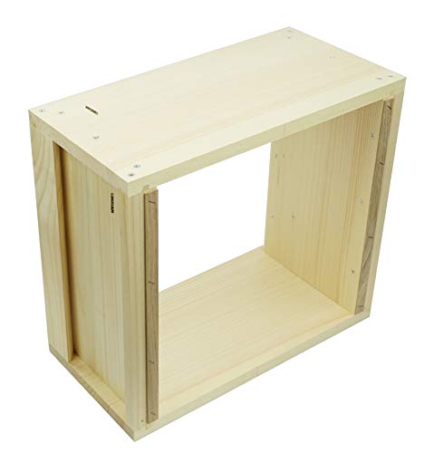 LIEFERUMFANG: Der Lieferumfang beinhaltet 1 x Zarge (An der Unterseite sind zwei zusätzliche Bewerkstelligen um von dem verrutschen zu sichern, An Vorder- und Abseite befinden sich Griffleisten. Ohne Auflageschinen) und 10 x Zander Rähmchen (Ober- und unterträger aus Lindenholz, Buche Seitenteile, geklammert und gedrahtet mit rostfreiem Draht)