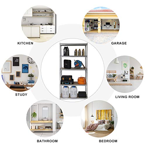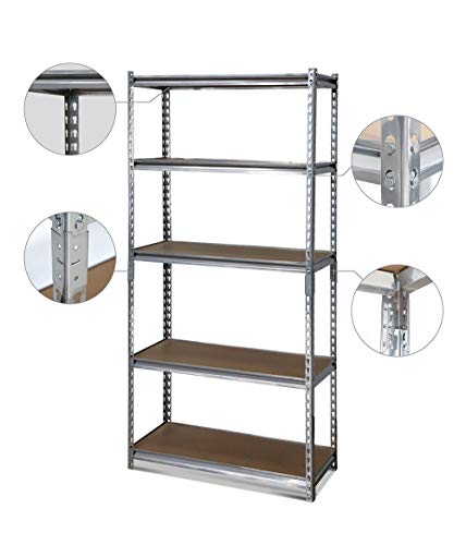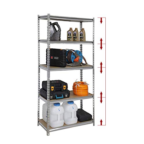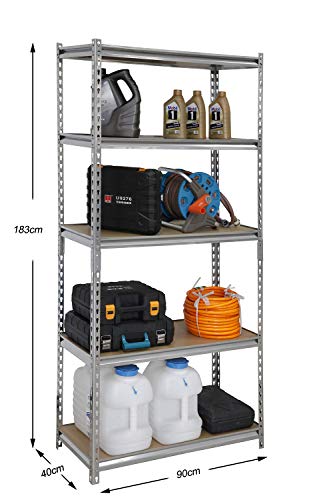 Der Schwerkraft standhalten:5-lagiges Regal aus 183 cm x 90 cm x 40 cm Silber.Jedes Regal hat eine maximale Tragfähigkeit von 175 kg und ein Gesamtgewicht von 875 kg.Jedes Regal wurde gründlich getestet und ist sehr zäh und abgehärtet im Gebrauch.