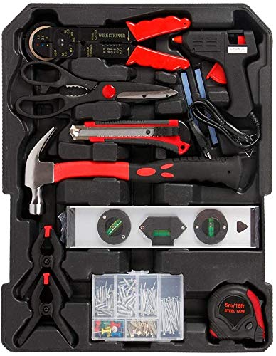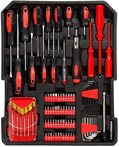 4 Tabletts mit grundsätzlich 186 Teilen zwischen Werkzeugen und Zubehör