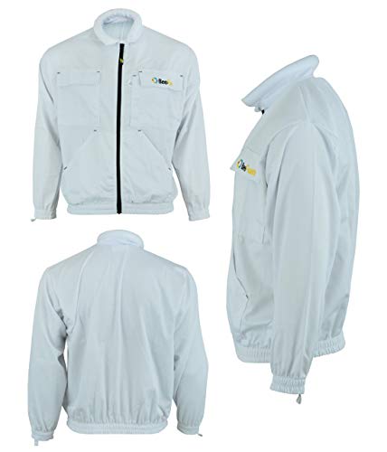 BeeFun Bienenjacke ohne Hut, in der Farbe Weiß. Diese Jacke ist besser für den Imker qualifiziert, der lieber ohne Kapuze arbeitet. Die Jacke hält Ihre Kleidung sauber, wenn Sie in den Bienen pflügen. Das Gummiband an den Enden verhindert das Eindringen von Bienen. Die Jacke hat einen weichen, vollen Kragen. Dies macht es sonderlich einfach, eine lose Kapuze zu benutzen, wenn man diese Jacke trägt. Du setzt die Kapuze auf deinen Kopf, und somit kannst du sie so verfassen, dass sie um den Rollkragen gleitet. Die Jacke ist allesamt fester, abgesperrt gewebter Baumwolle gefertigt. Auf der Vorderseite befindet sich ein hochwertiger Reißverschluss (von der Marke YKK), so dass man ihn einfach denn Jacke anziehen kann. Die Jacke hat zwei Taschen und zwei Brusttaschen und ist adrett verarbeitet. Die Schnüre am Reißverschluss sorgen dafür, dass Sie sie mit Handschuhen leicht induzieren können.