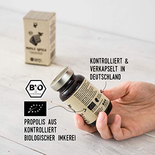 BIO PROPOLIS KAPSELN – 60 Kapseln mit BIO Propolis Extrakt aus kontrolliert biologischer Imkerei und Verarbeitung nach einem patentierten Herstellungsverfahren für eine standardisierte Qualität auf die Polyphenole, den wertvollen sekundären Pflanzenstoffen im Propolis (42mg Polyphenole in jeder Kapsel, gesamt 2520mg) für eine noch bessere Propolis Qualität!