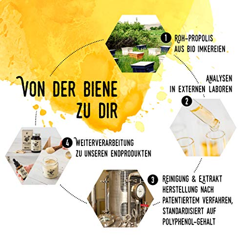 BIO PROPOLIS KAPSELN – 60 Kapseln mit BIO Propolis Extrakt aus kontrolliert biologischer Imkerei und Transaktion nach einem patentierten Herstellungsverfahren für eine standardisierte Qualität auf die Polyphenole, den wertvollen sekundären Pflanzenstoffen im Propolis (42mg Polyphenole in jeder Kapsel, gesamt 2520mg) für eine noch bessere Propolis Qualität!