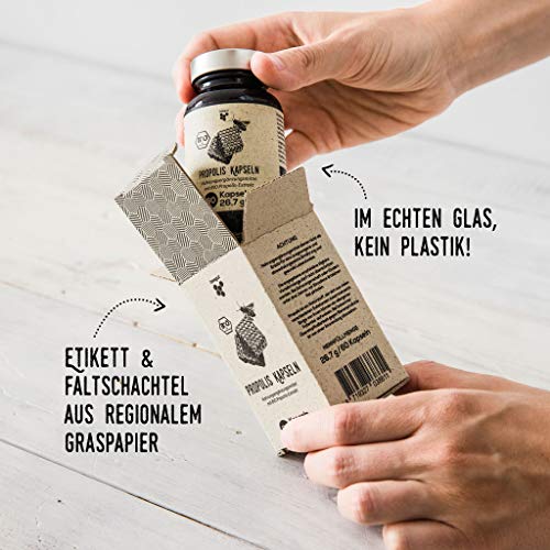 beegut BIO Propolis Kapseln, 60 Kapseln in pflanzlicher Kapselhülle mit BIO Propolis Extrakt, nachhaltige Verpackung