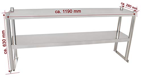 ZUBEHÖR Ausarbeitung: 120 cm Edelstahl Aufsatzboard Regal mit 2 Böden – Zubehör brauchbar für die Beeketal Edelstahl Küchen Arbeitstische