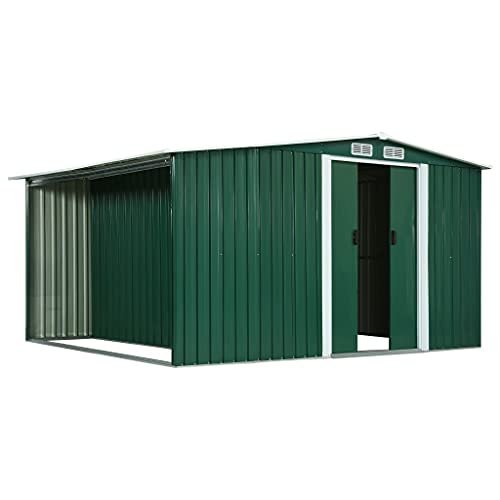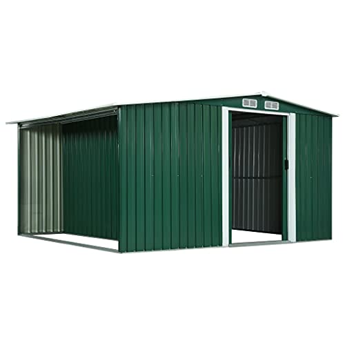 Dieser Gartenschuppen wird perfekt für die Lagerung einer Mannigfaltigkeit von Werkzeugen, Brennholz und Gartengeräten sein. Dieser Geräteschuppen ist mit Lüftungsöffnungen ausgestattet, die als Rollläden ausgeführt sind und nicht doch den Regen fernhalten, sondern bekannt als eine gute Belüftung gewährleisten, um die Ballung von Feuchtigkeit und Geruch im Inneren zu vermindern. Die zweiflügeligen Schiebetüren ermöglichen einen einfachen Einsicht. Diese können mit einem Vorhängeschloss (nicht im Lieferumfang enthalten) durch die vorgebohrten Löcher in den Griffen gesichert werden. Dank des korrosionsbeständigen, verzinkten Stahls ist der Gartenschuppen robust und langlebig. Der Lagerschuppen muss vor dem Gebrauch montiert werden.