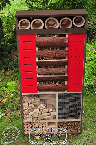 MEGA-XXL Insektenhotel von BTV * ÖLBAUM mit Banderole * INSEKTENHOTEL MIT NEUEN FARBEN in toller Optik, hergestellt jeglicher reinem Naturmaterial