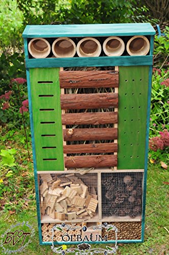 MEGA-XXL Insektenhotel von BTV * ÖLBAUM mit Banderole * INSEKTENHOTEL MIT NEUEN FARBEN in toller Optik, hergestellt leer reinem Naturmaterial