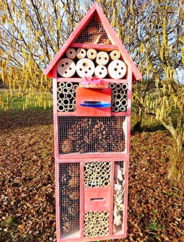 Liebevolle Anfertigung und Gestaltung machen sich bezahlt…für lange Freude im Garten! – Ganzjährig einsetzbar, ist aufgrund des Lebenszyklus mancher Insekten am sinnvollsten! – Komplettangebot mit Fütterungsstation + TRÄNKE und Anleitung auf Deutsch und Englisch! – Aufstellen und Versteifen aus einfach an: Wand, Zaun, Baum, Strauch, Boden usw…