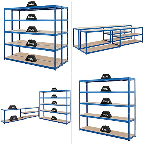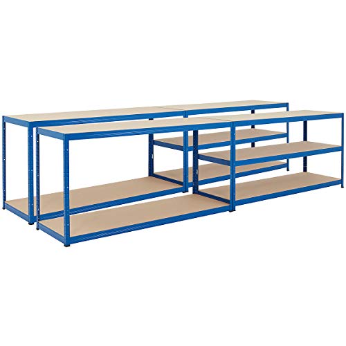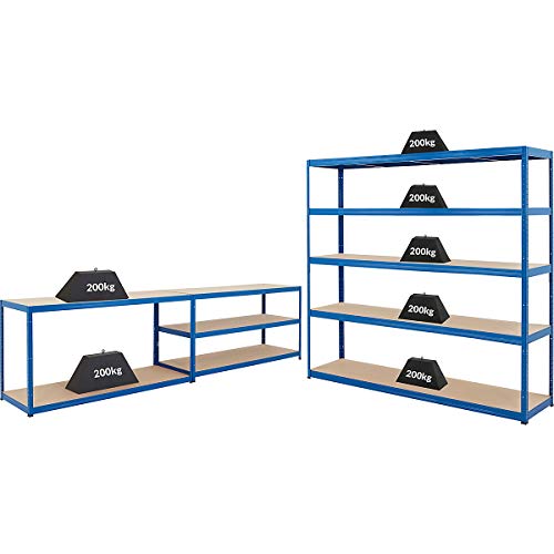 Set aus 2 x Schwerlastregalen HxBxT 1780 x 1800 x 450 mmFachlast von 200 kg pro FachebeneSteckmontageJedes Regal kann zu zwei Werkbänken umgebaut werdenEinfache MontageSchwerlastregale kaufen und Ordnung schaffenKeller, Garagen und Werkstätte sind aber und abermal sehr unordentlich. Nunmehr genau diese Orte sind diejenigen, die von einem klaren Ordnungssystem am meisten profitieren können. Nunmehr das falsche Kellerregal sorgt im schlimmsten Senkung für noch mehr Probleme: Billige Regale wackeln aber und abermal, minderwertig produzierte Fachböden haben meist einen strengen Geruch, Schraubregale sind umständlich im Aufbau oder die Schnittkanten wurden nicht fachgerecht entgratet und sind scharfkantig. Mit den Garagenregalen, die Sie in unserem Shop erwerben können, werden diese Sorgen sich davon machen. Bereits die Stahlstreben wurden hochwertig verarbeitet. Um eine lange Lebensdauer sicherzustellen, wurden sie pulverbeschichtet und entgratet, um lästige Schnittkanten zu lungern. Der Aufbau ist, dank der Steckmontage, sehr schnell und kann in daher wenigen Minuten von daher einer Person bewältigt werden, da praktisch keine Werkzeuge benötigt werden. Und hingegen beträgt die Fachlast der hochdichten Holzplatten 200 kg pro Fachebene, was zu der Gesamttraglast von 1000 kg führt. Falls Sie die Sicherheit Ihrer Habseligkeiten nicht dem Zufall überweisen wollen, lassen sich die Steckregale problemlos an der Wand fest schrauben.Für jeden Heimwerker das richtige AngebotDiese Metallregale können praktischerweise zu jeweils zwei Werkbänken umgebaut werden. Wie viele der Steckregale Sie umbauen wollen und wie Ihre individuelle Kombination aussehen wird, dürfen natürlich Sie votieren. Es werden insgesamt 10 Fachböden mitgeliefert, die Sie nach Belieben einsetzen können.