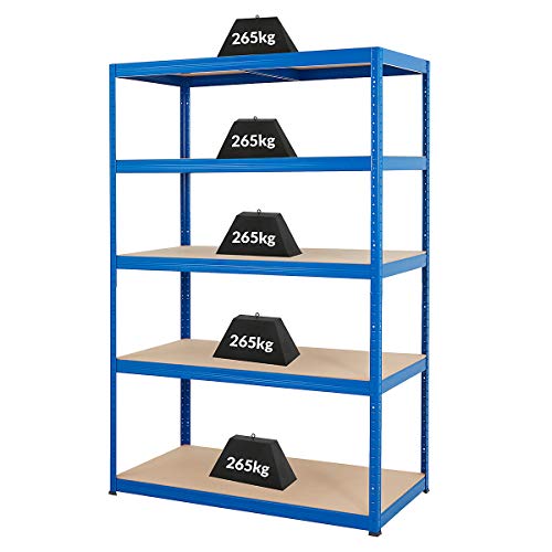 Certeo Stabiles Schwerlastregal | HxBxT 178 x 120 x 60 cm | Tragkraft bis zu 265 kg pro Fachboden | Blau | Metallregal…