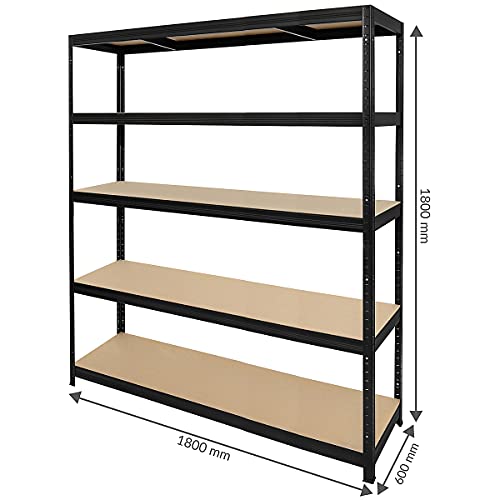 Certeo Stabiles Schwerlastregal | Tragkraft 200 kg pro Fachboden | HxBxT 1800 mm x 1800 mm x 600 mm | Schwarz…