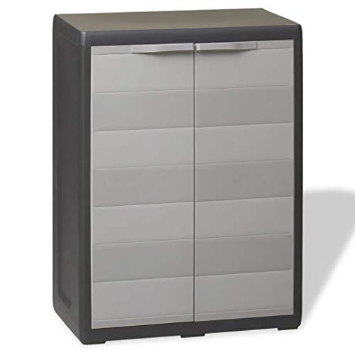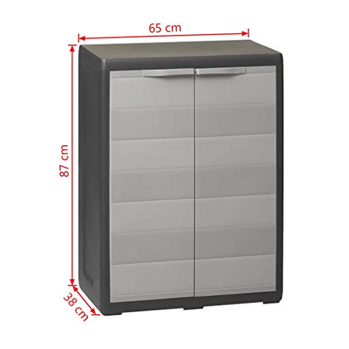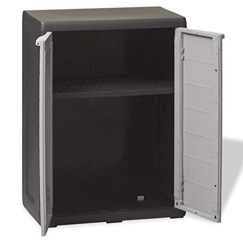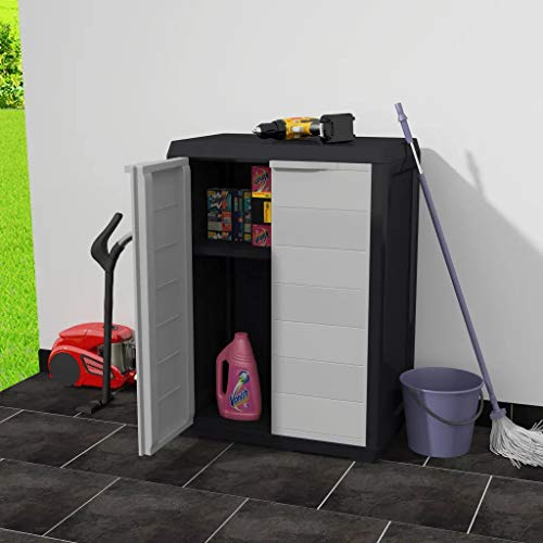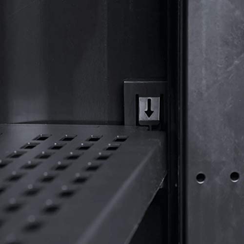 Der Gartenschrank verfügt via eine belüftete Einlegeboden, die in der Höhe verstellt werden kann, um verschiedene Gegenstände zu verstauen