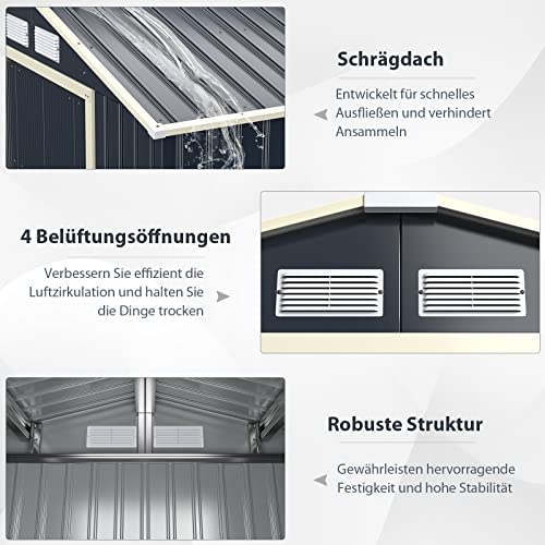 🏡【Geräteschuppen mit großem Innenraum】 Dieser Schuppen entfernen bietet Ihnen 5,29 ㎡ an Bodenfläche für Gartengeräte, Rasenmäher oder Fahrräder. Die Schiebetüren lassen sich einfach öffnen und sind sogar zur Sicherheit abschließbar, wodurch weder unbefugte Personen, noch Tiere, hineingelangen können.