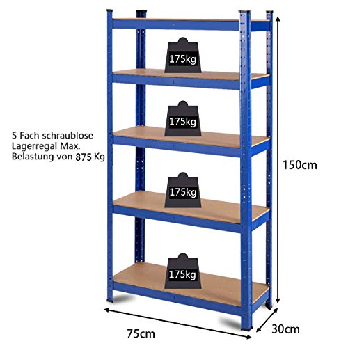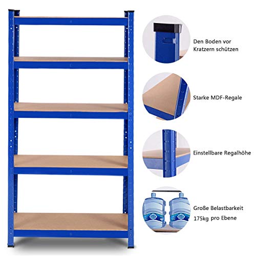 COSTWAY Lagerregal Schwerlastregal, Steckregal Metallregal 5 Ebenen, Werkstattregal 150x75x30cm, Garagenregal…