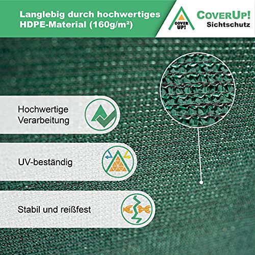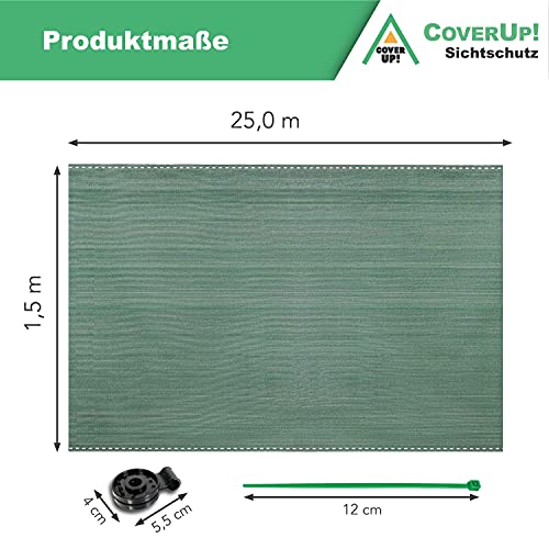 CoverUp! Sichtschutz Zaun 1,5 x 25 m grün [160 g/m²] ideal für Zäune und Balkongeländer – hochwertiger Zaun Sichtschutz…