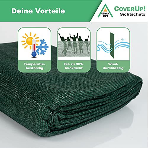 🏡 ✂️ VIELSEITIG EINSETZBAR – Der CoverUp! Sichtschutz ist sinnvoll an Stelle verschiedenste Einsatzgebiete (Zaunblende, Balkonverkleidung, Terrassenschutz, Gewächshaus Beschattung, Tennis Sichtschutz u.v.m.)