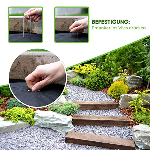 DAWIDU Gartenvlies Unkrautvlies 150g/m2 [50m²] inkl. 50 Erdanker Set verzinkt Natürlich gegen Unkraut – Premium Anti…