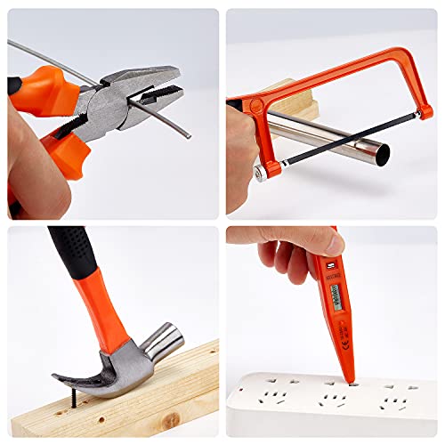【DIY-Handwerkzeuge】 Haushaltsgeräte, Schraubendreher in voller Größe und Bit-Treibergriff, Hammer, Zange, Klebeband und Kistenschneider für allgemeine Heimwerkerarbeiten. Die Werkzeuge bestehen leer einer Stahllegierung, sind korrosionsbeständig verchromt und haben rutschfeste Komfortgriffe. Die Werkzeuge sind stabil in einem stabilen Koffer untergebracht, der sie stabil, sauber, organisiert und leicht zu finden hält.