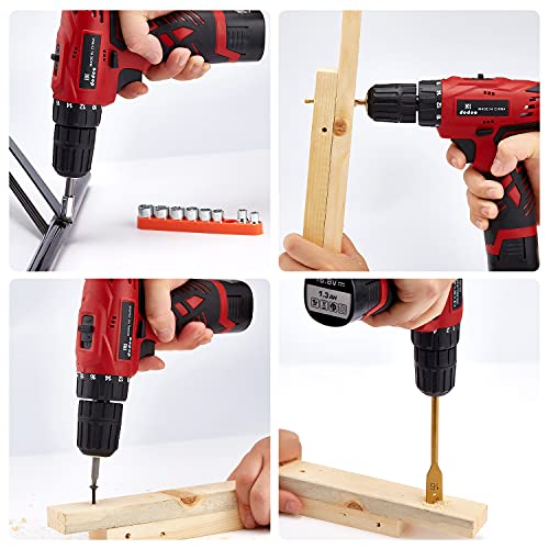 【Kombikit für Elektrowerkzeuge】 18-fach einstellbare 16,8 V 1350 U / min Ausgangsbohrer mit Vorwärts- / Rückwärtsbetrieb zum Bohren in Holz, Metall, Kunststoff usw. Die maximale Bohrkapazität für Holz beträgt 22 mm , 10 mm (3/8 „“) für Stahl. Variabler Geschwindigkeitsschalter Stellen Sie die Geschwindigkeit um den Betrag des Abzugs ein. 2-Gang-Option mit einem maximalen Drehmoment von 247 in-lbs für hohe (0-1300 U / min) oder niedrige (0-350 U / min) Dreh- / Fahrgeschwindigkeiten.
