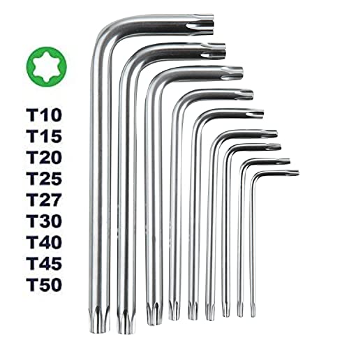 ZUSAMMENSETZUNG DES SETS: Dieses Kit enthält 9 Torx-Schlüssel mit unterschiedlichen Durchmessern: T10, T15, T20, T25, T27, T30, T40, T45, T50.