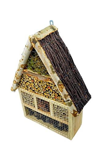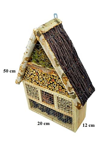 ✅KONSTRUKTION: Dieses Insektenhotel ist jeder mehreren unterschiedlichen Teilen aufgebaut. Alle Vertrieb ist mit Rinde, Zapfen oder Moos und gebohrten Holz- oder Bambusstäben gefüllt.