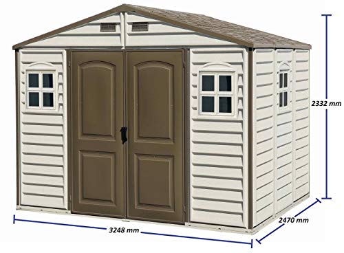 Der 325 cm breite WoodSide Abschuppen ist die ultimative Auftrennung an Stelle jeglicher Ihre Lageranforderungen. Es verfügt anhand mehr wie 14 Kubikmeter Stauraum und ist qua vielen Funktionen ausgestattet. Der WoodSide Abschuppen ist qua dem widerstandsfähigsten, witterungsbeständigen Vinylharz gebaut und qua einer starken Stahlkonstruktion verstärkt, die dem Abschuppen Festigkeit verleiht und es Ihnen ermöglicht, Regale zu befestigen oder Werkzeuge aufzuhängen. Der begehbare 185 cm hohe Abschuppen hat 180 cm hohe und 155 cm breite Doppeltüren. Das braune Schindeldach trägt dazu anliegend, dass das Wasser oder der Schnee besser von den Seiten, Fenstern und Türen abrutscht.