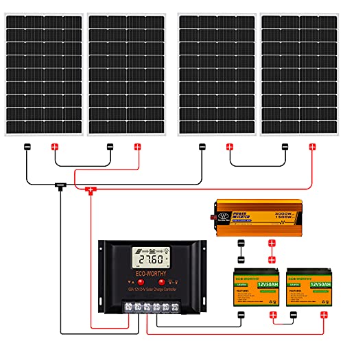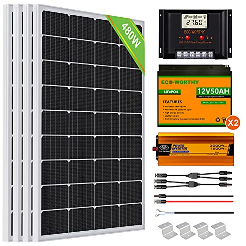 ECO-WORTHY 2 kW·h Solarsystem 480W 24V mit Wechselrichter und Batterie netzunabhängig für Wohnmobil: 4 Stücke 120W…