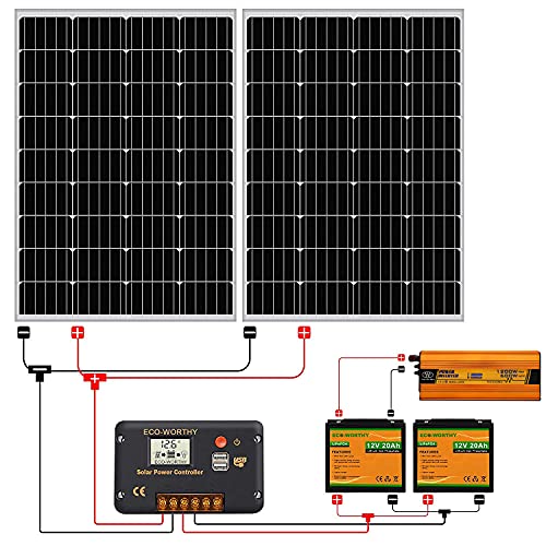 ECO-WORTHY 240W Solaranlage Komplettset Inselanlage netzunabhängiges Kit für Wohnmobil Camper: 2 Stücke 120W Solarmodul…