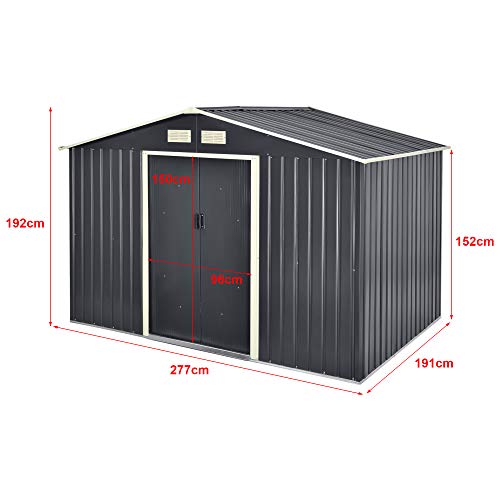 ![[en.casa] Gartenschuppen 277x191x192cm aus Metall Gerätehaus Gartenhaus mit Metallrahmen Dunkelgrau – Bild 7](https://m.media-amazon.com/images/I/51Or+citXwL.jpg)