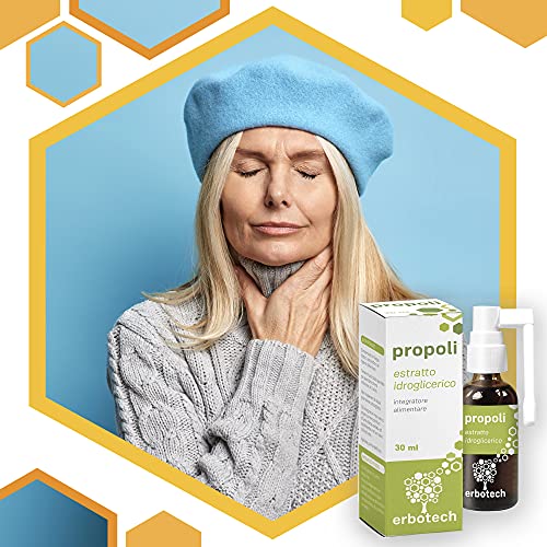 ERBOTECH Propolis Spray 30 ml, Urtinktur, reiner Extrakt, geeignet für KINDER, natürliches Heilmittel gegen Halsschmerzen und Husten, trägt zum Wohlbefinden der Atemwege bei, Made in Italy