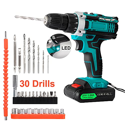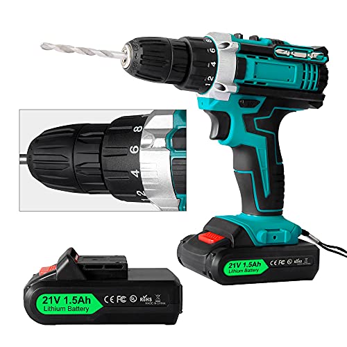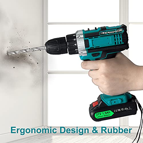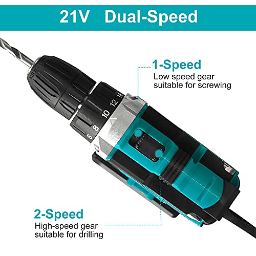 【21V 2 Drehzahl】2 Drehzahl zwischen 0 – 700 U / min oder 0 – 1500 U / min für einfaches Anpassen und Loslösen der Schraube. Niedrige Geschwindigkeit zum Anziehen der genauen Schrauben und hohe Geschwindigkeit zum sanften Durchstechen der Furchen. Das maximale Abtriebsmoment beträgt 32 Nm