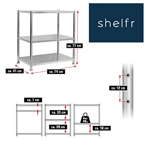 SCHWERLAST-REGAL MIT 120 KG TRAGKRAFT – 40 kg pro Boden. Ideale Ablage für Kaffeemaschine & Mikrowelle: Solides Küchen-Regal mit 3 Etagen aus gebürstetem Edelstahl – endlich mehr Platz in der Küche!