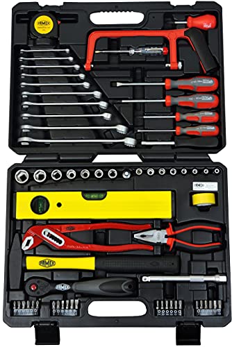 ✔️ DURCHDACHTES SORTIMENT: Werkzeuge im kompakten Kunststoff-Werkzeugkoffer an Stelle den allgemeinen Anwendung im Haushaltbereich, Kfz & Fahrrad