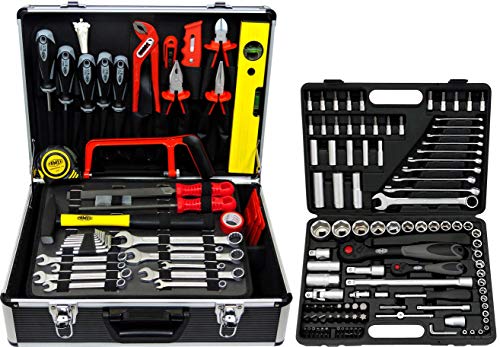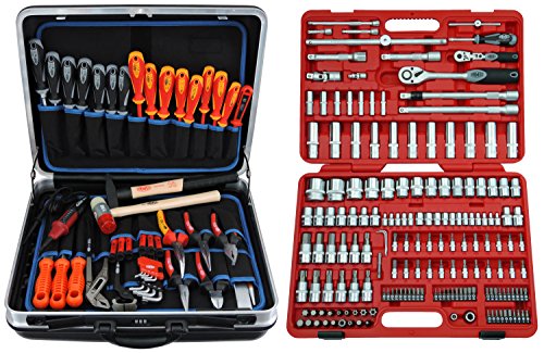 FAMEX 719-50 Mechaniker Werkzeugkoffer-Komplettset mit Steckschlüsselsatz 4-32mm, 166-/ insgesamt 207-teilig