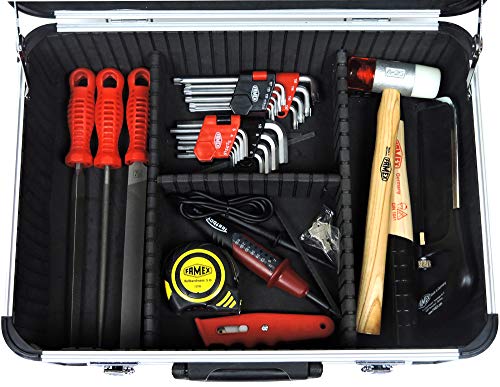 FAMEX 414-20 Aluminium Werkzeugkoffer per Top-Werkzeugbestückung und 174-teiligem Steckschlüsselsatz, Melange Werkzeuge Hergestellt in Deutschland. Werkzeugkoffer per Einstecktaschen zugunsten das Werkzeug. Schnelle Abhebung und von neuem einstecken des Werkzeugs. Ideal zugunsten die häufige Anwendung, z.B. im Kundendienst