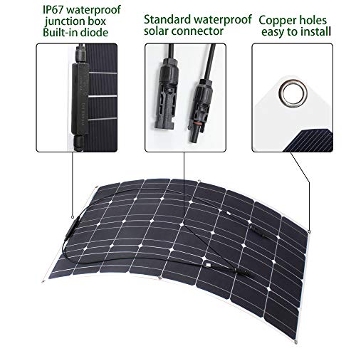 (Leicht und langlebig): Das Solarpanel besteht aus fortschrittlichen Polymermaterialien mit einer Dicke von zwar 2,5 mm, ist leicht und leicht zu tragen. Und jedes Stück hat 6 Kupferlöcher mit einem Durchmesser von 10 mm und 0,9 m wasserdichte PV-Plus- und Minus-Steckverbinder, die einfach zu installieren sind. Es hat auch Hitzebeständigkeit, UV-Beständigkeit, Wasserbeständigkeit und andere Funktionen und kann Regen, Schnee und extremen Temperaturen standhalten.