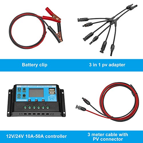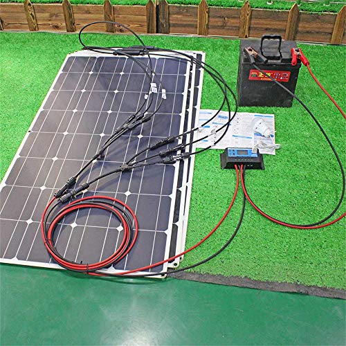 (Sie erhalten): 3 Stück flexibles Solarpanel 100W, 12V/24V 30A Solarregler, 3m langes Kabel mit PV-Anschluss, 1m langes Kabel mit Krokodilklemme, 3-in-1-Adapter,Bedienungsanleitung und freundlicher Kundenservice.